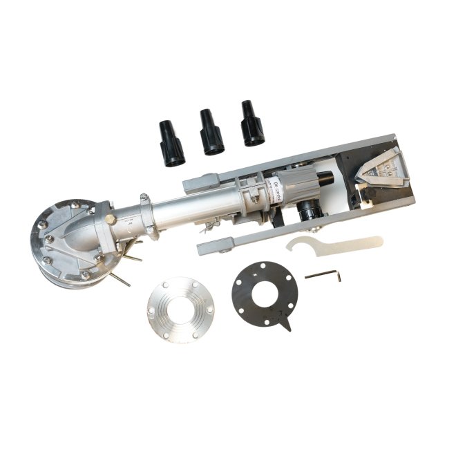 Rain Gun Size: 2″ flange Material: Aluminum Pressure: 3-8 bar Radius: 32-63 m Angle: 24° Accessories: With flange and gasket